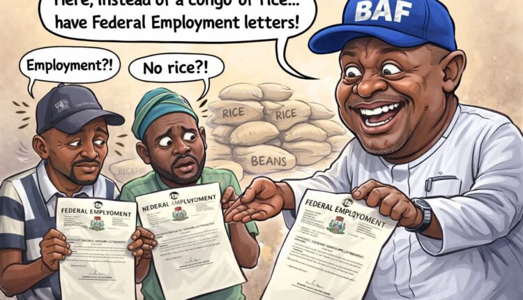 Everybody knows that we are in the Yuletide period—that sacred Nigerian season when generosity is not measured by impact, policy, or sustainability, but by congo of rice. December is the month when stomach becomes the Constitution and Chicken the Supreme Court.